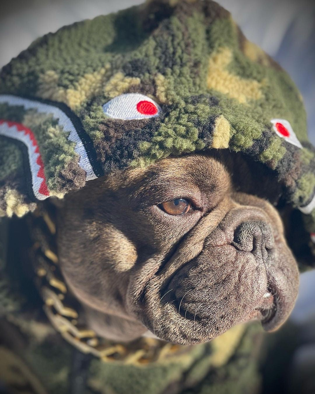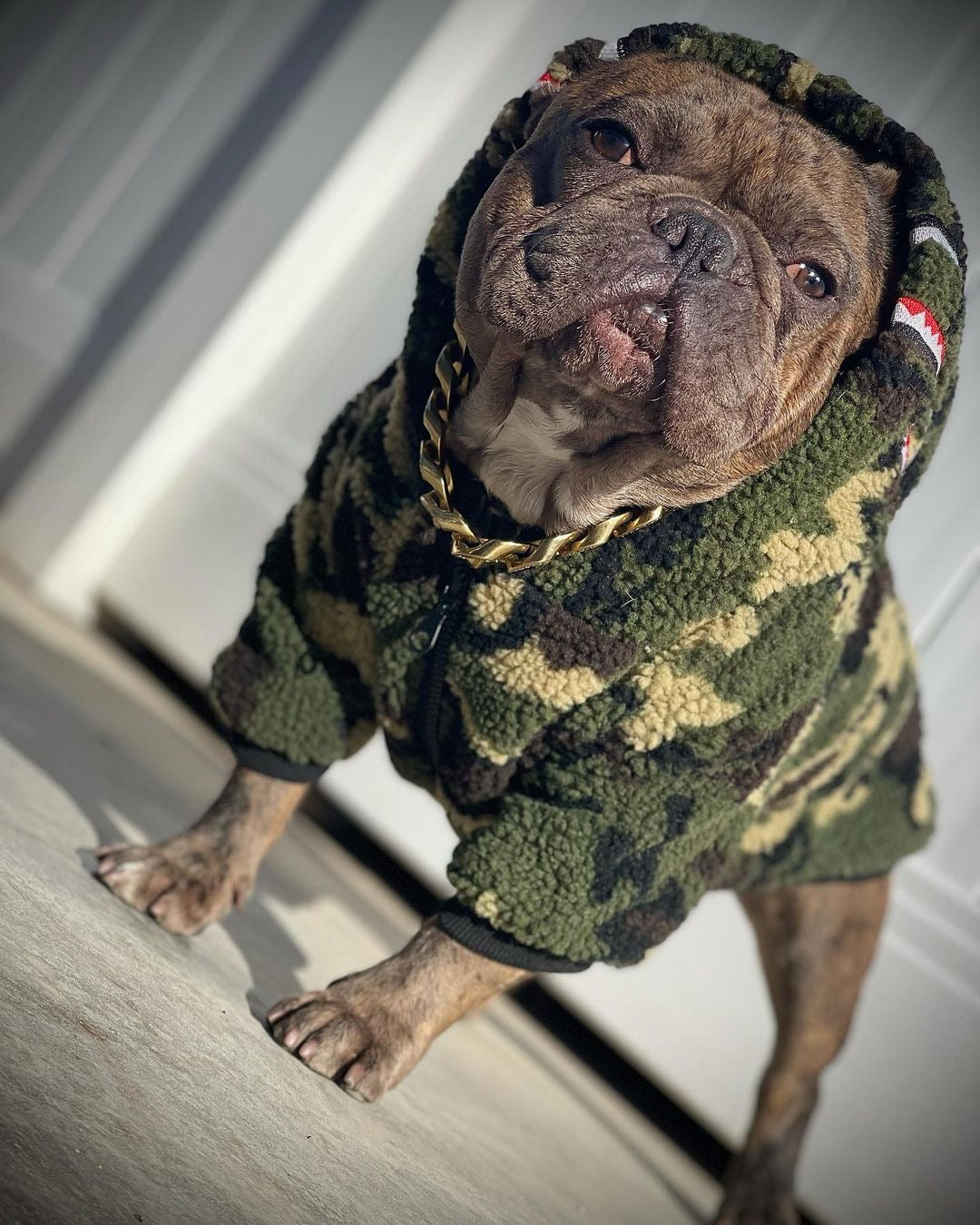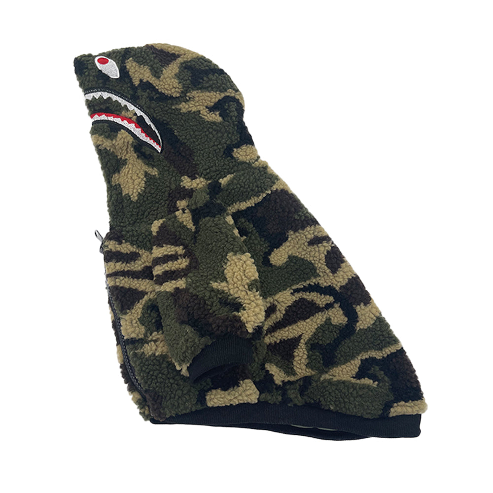 This is the hoodie people recognize from three blocks away. The camo shark combo is pure A Barking Pup DNA – streetwear culture for dogs who get it.