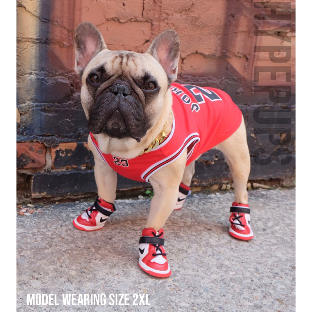 This is the jersey that started the whole basketball dog trend. When basketball season hits, these move fast. Three colorways, same quality construction.