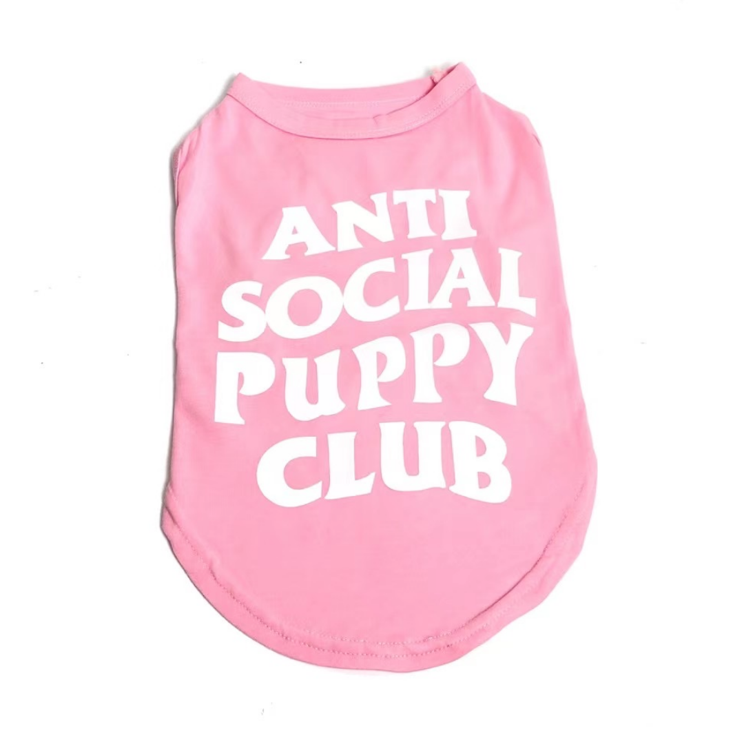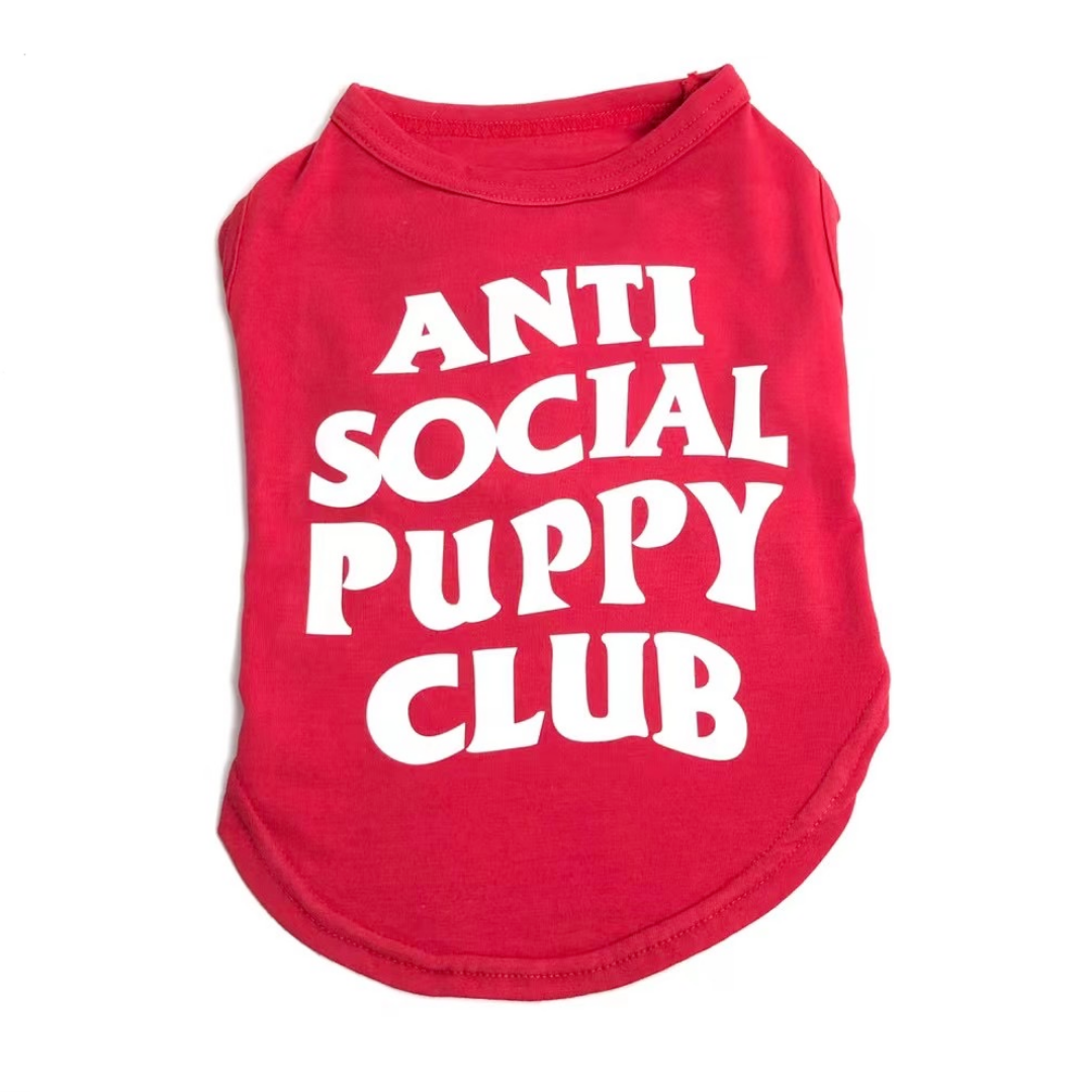 - Large “ANTI SOCIAL PUPPY CLUB” text print across the chest