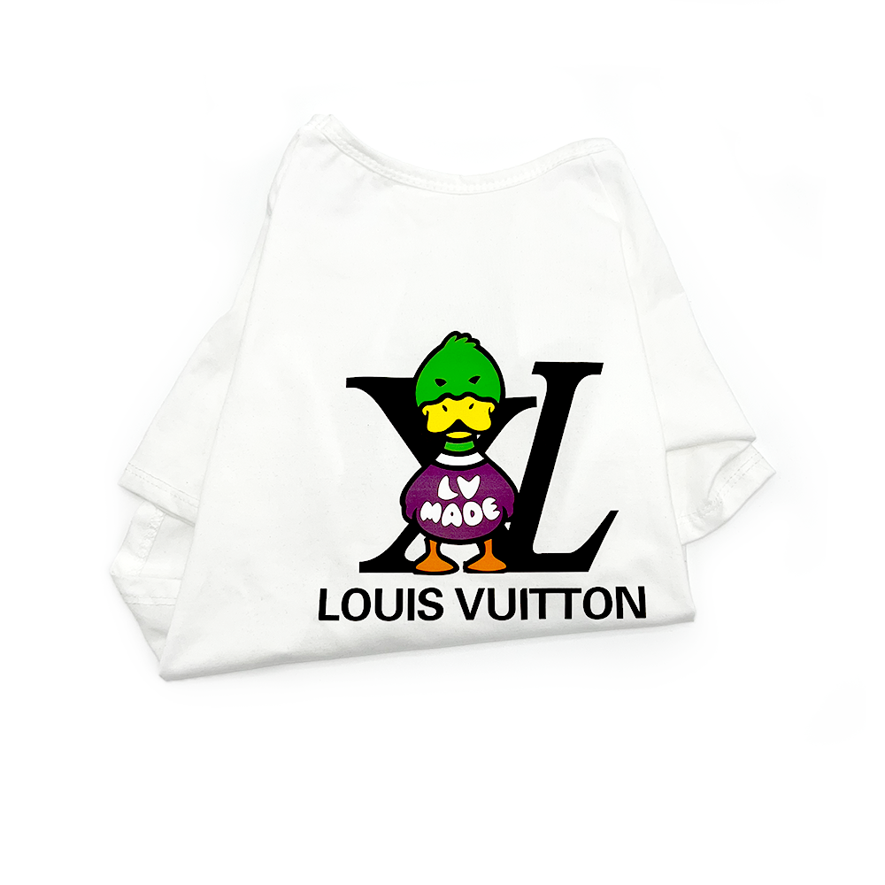 - All-over graphic featuring cartoon duck character with “LV MADE” text