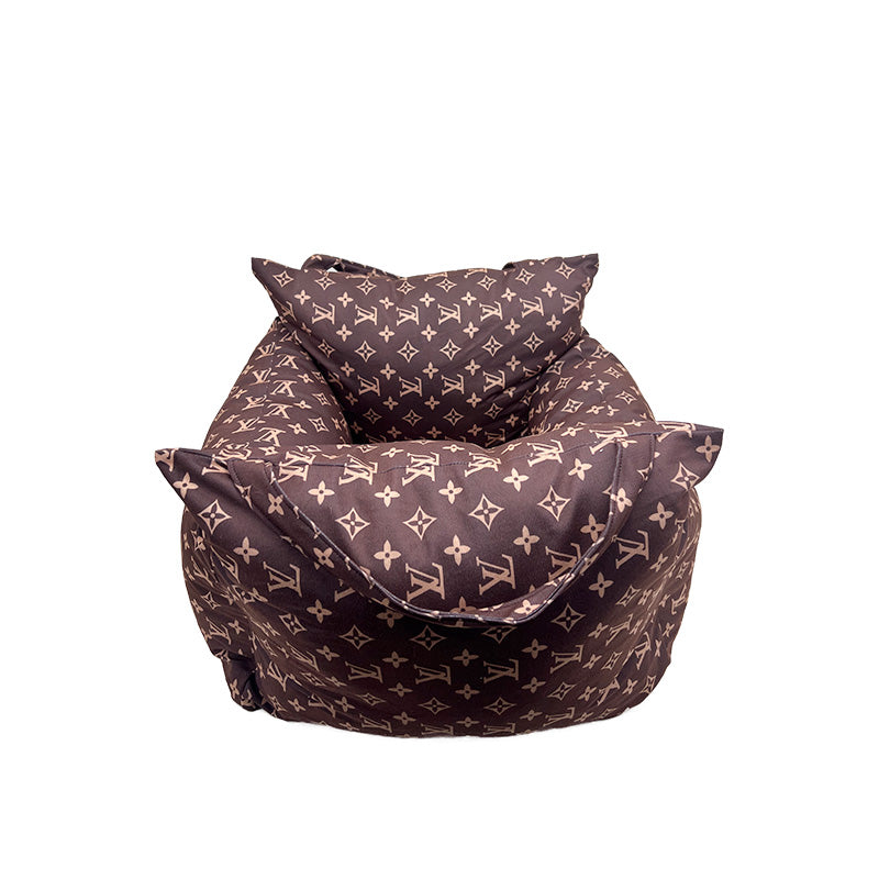The Chewy V Monogram Dog Bed brings the signature V monogram print to a cushioned bed built for comfort. Raised sides create a secure snuggle spot, while the classic brown and tan colorway works in any room.