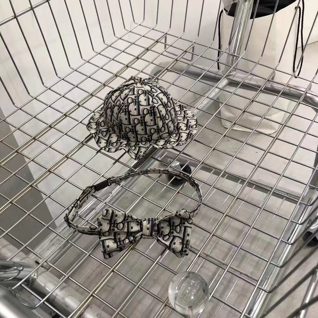 This is the set for dogs who need to look put-together. Hat stays on, bow tie adjusts to fit, and the monogram print makes it clear this isn’t from the pet store.