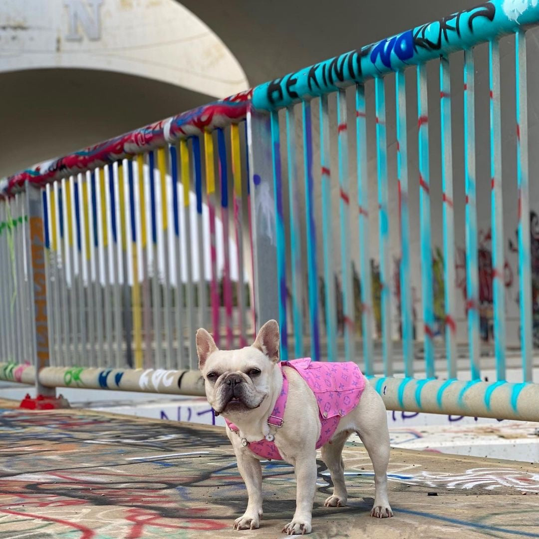 The overalls that work for park days and photo shoots. Classic overall construction with the monogram print people recognize from across the street.
