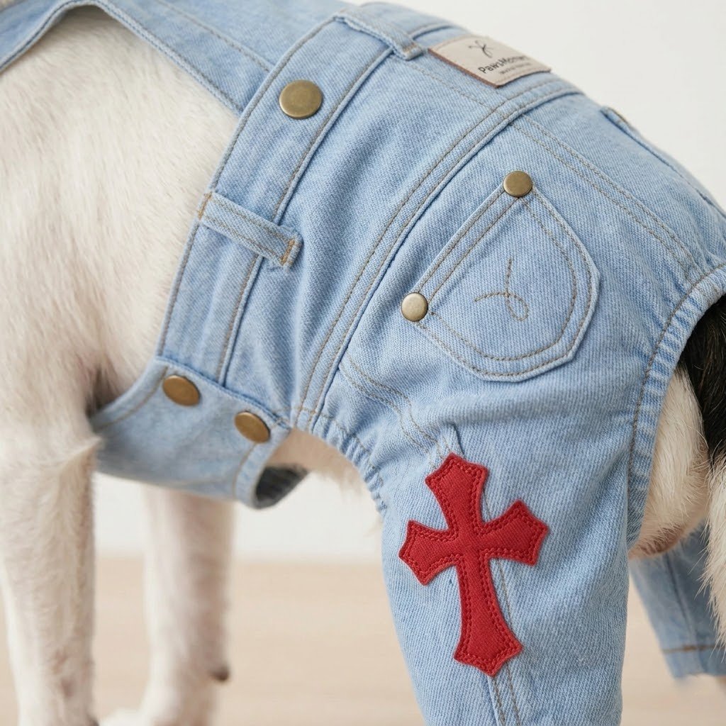 This is the piece for dogs who need their gothic streetwear with functional construction. The cross patches reference Chrome Hearts’ signature motif while the overall cut gives it that workwear credibility.