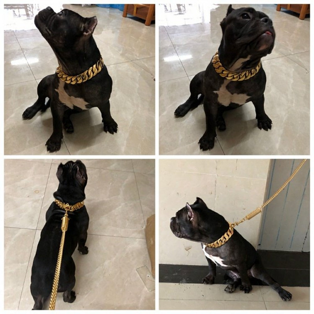 This is the collar people notice first. Heavy enough to feel premium, secure enough for daily wear. The links move like jewelry, not pet store gear.