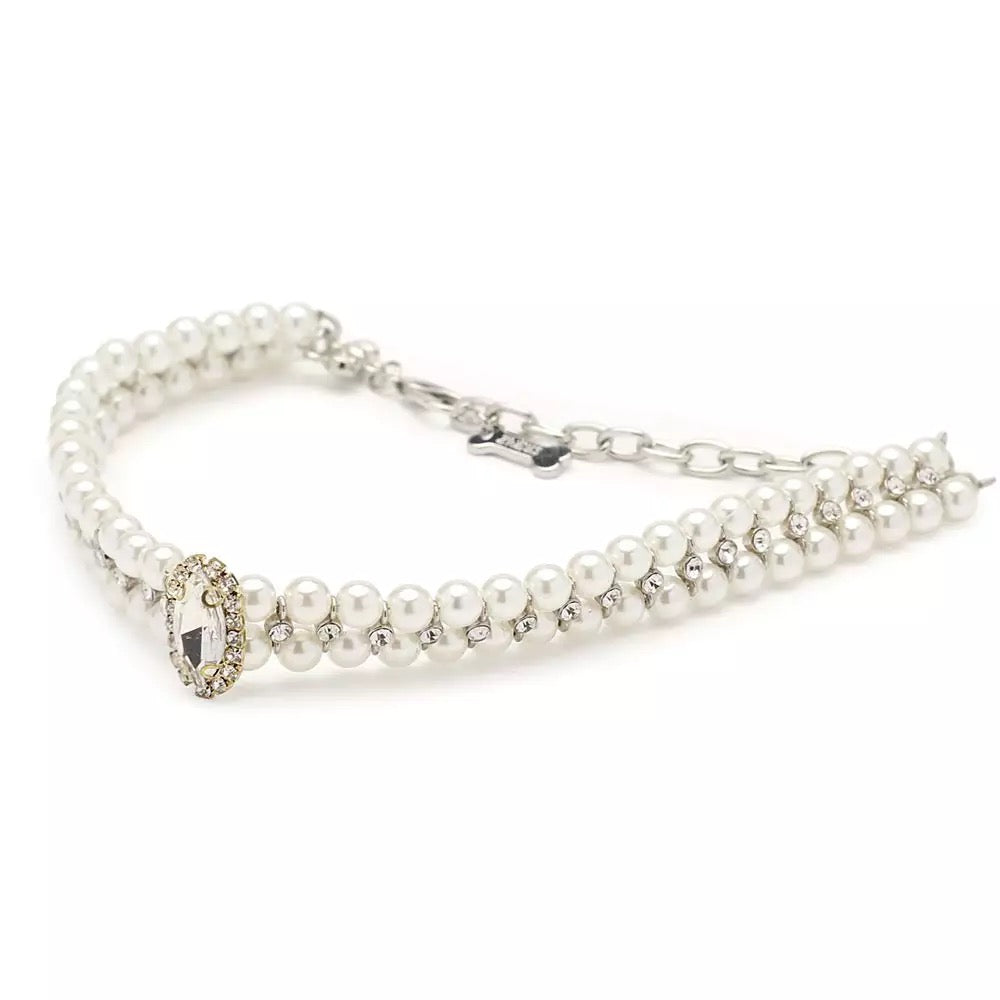 Multi-strand faux pearls with a crystal rhinestone centerpiece that catches light from every angle. The Faux Pearl Necklace brings wedding-day elegance to any occasion worth celebrating.