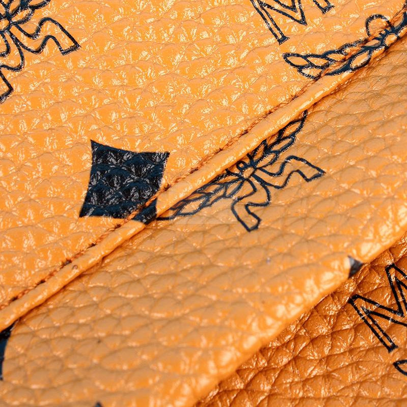 The MCM Monogram Dog Carrier puts the signature diamond pattern on a structured carrier built for safe transport. Cognac brown leather with black diamond print and MCM lettering across the body, plus padded straps that distribute weight evenly.