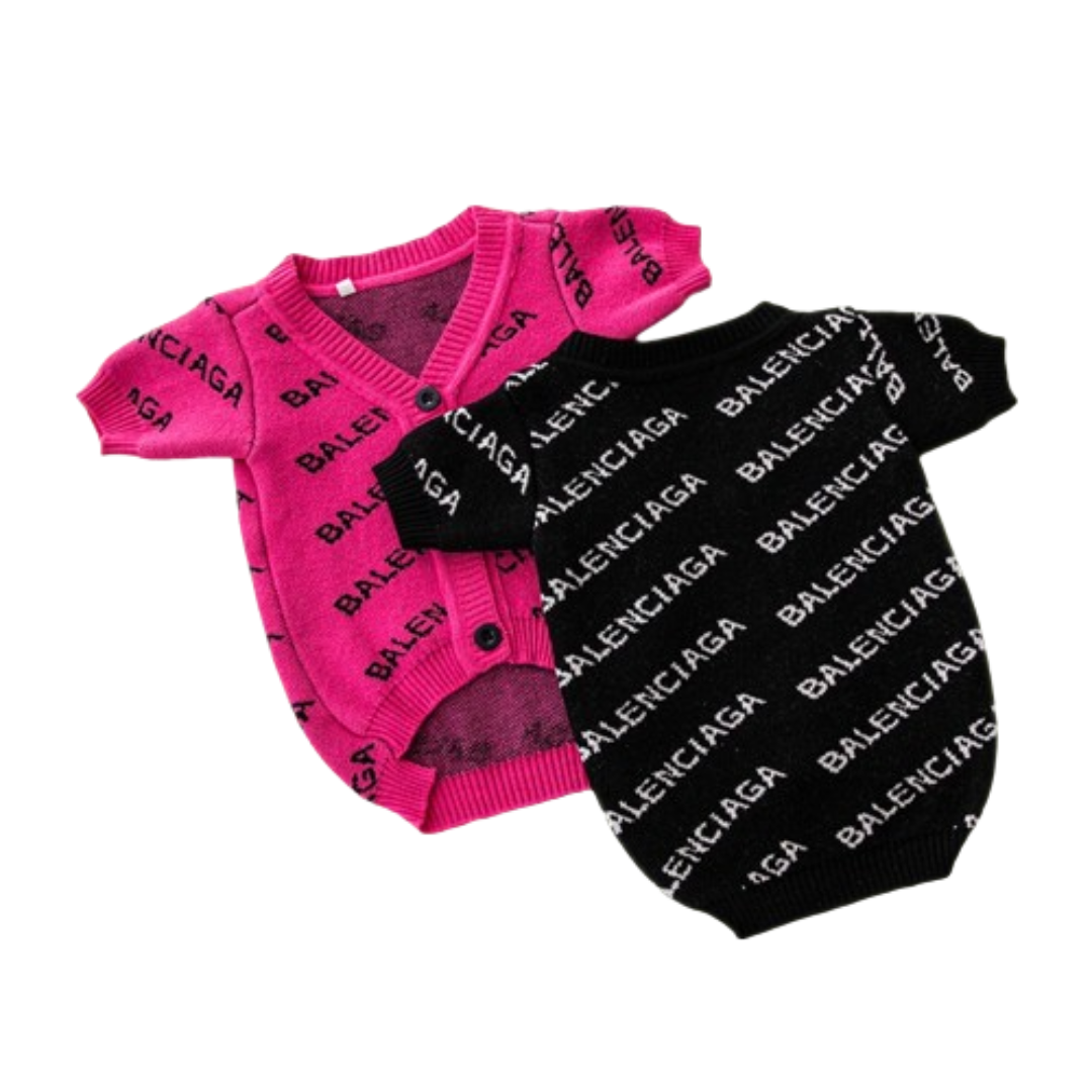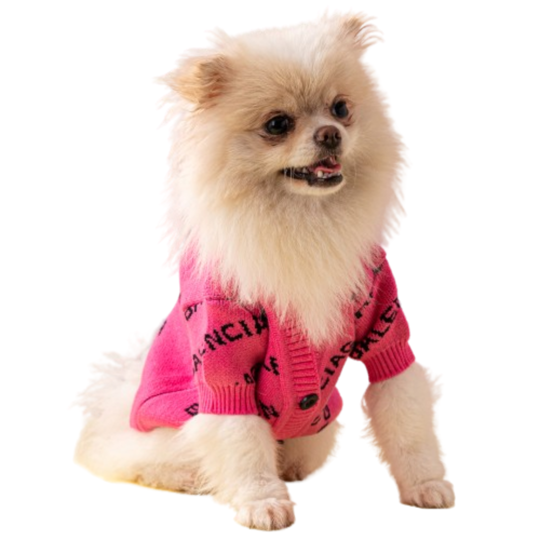 All-over Pawlenciaga logo print on a button-front cardigan that works for every season. The repeated logo pattern covers the entire sweater, giving it that designer look people notice from across the dog park.