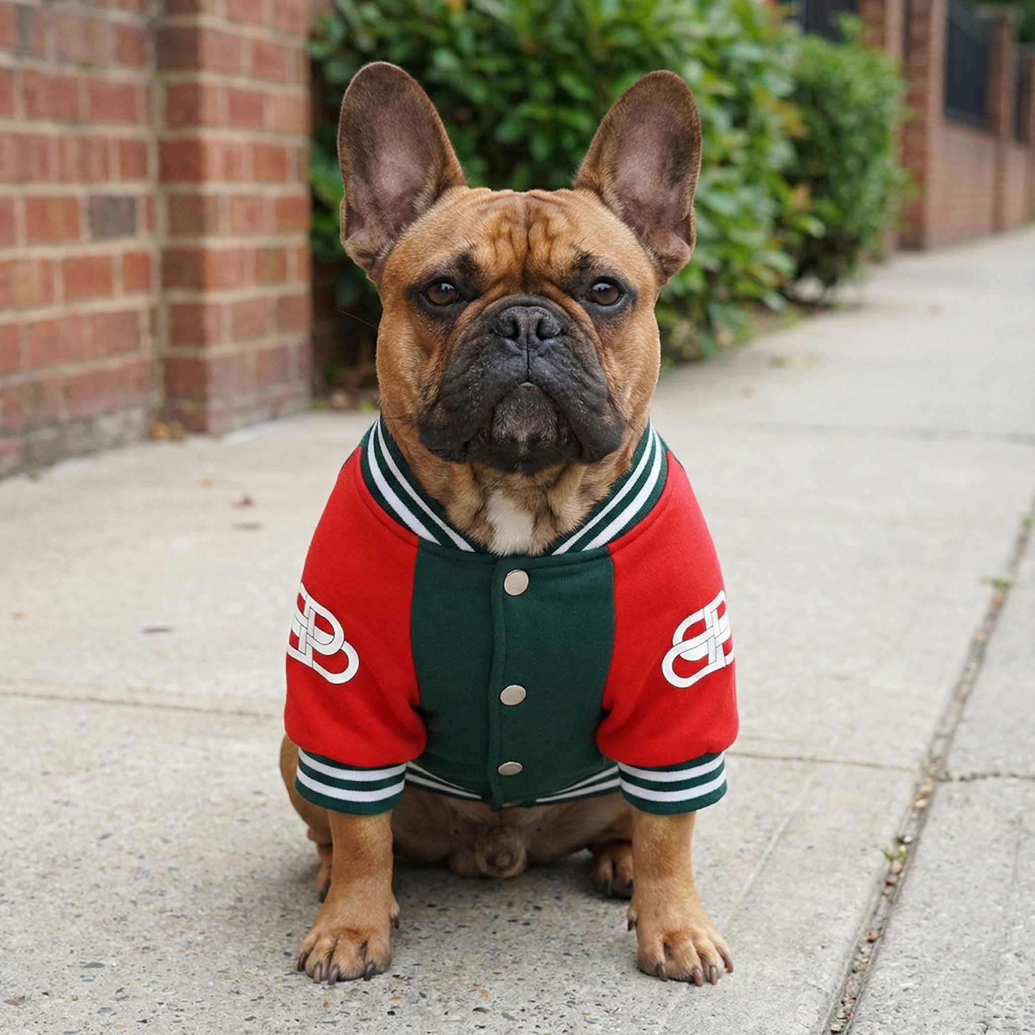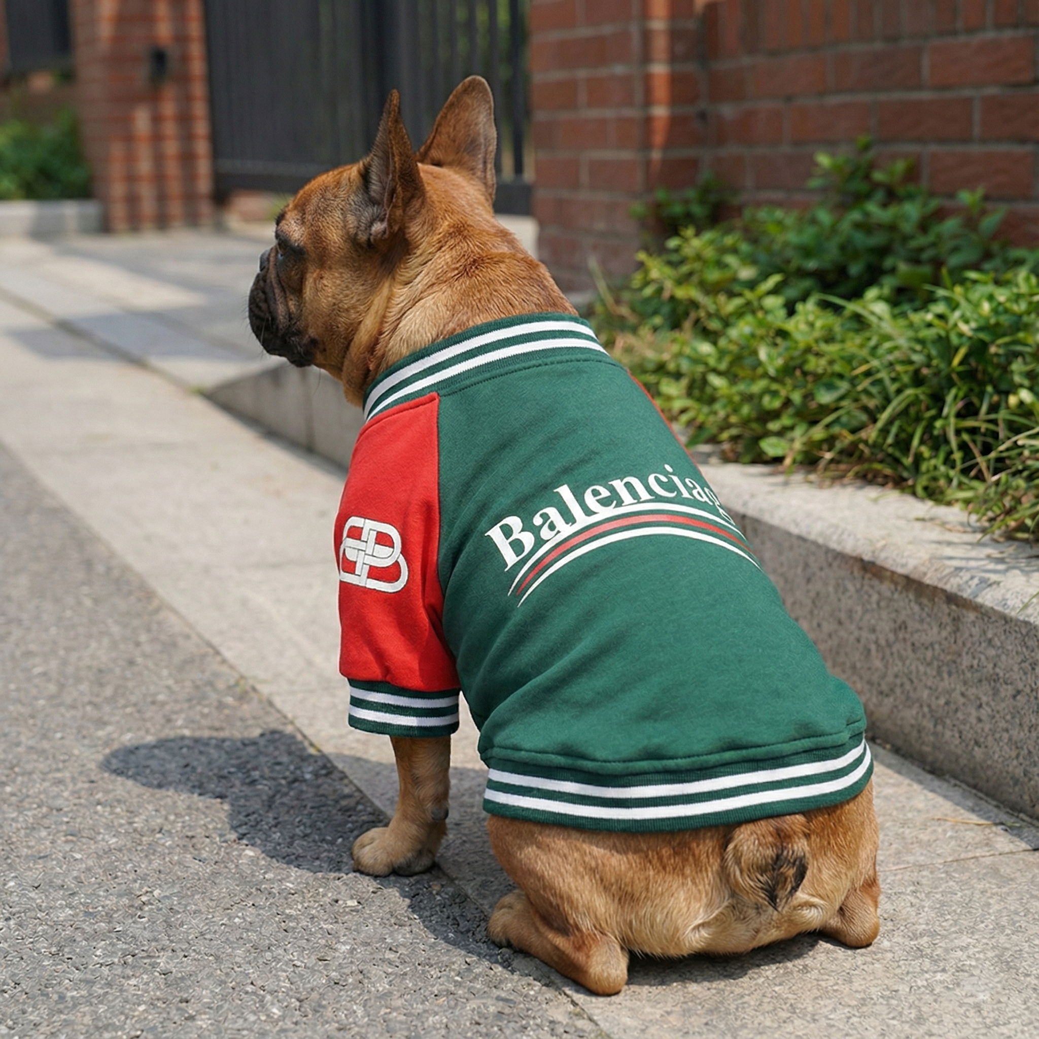 Green body, red sleeves, white “Balenciaga” across the chest. The Pawlenciaga Varsity Bomber Jacket brings classic varsity style with designer-level colorblocking and bold athletic details that make every walk look intentional.