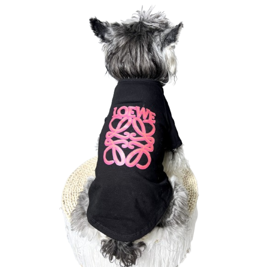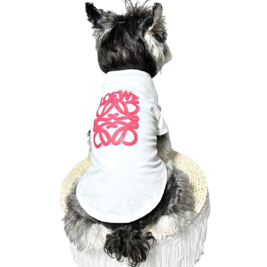 The Woof-White Logo Script Tee puts the signature pink script front and center on a classic streetwear silhouette. Bold logo placement across the chest, available in black and white colorways that work with everything in your pup’s rotation.