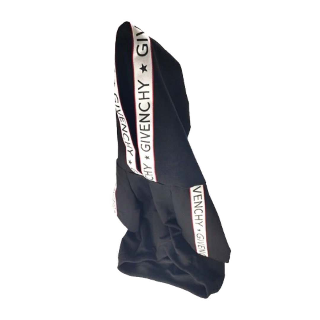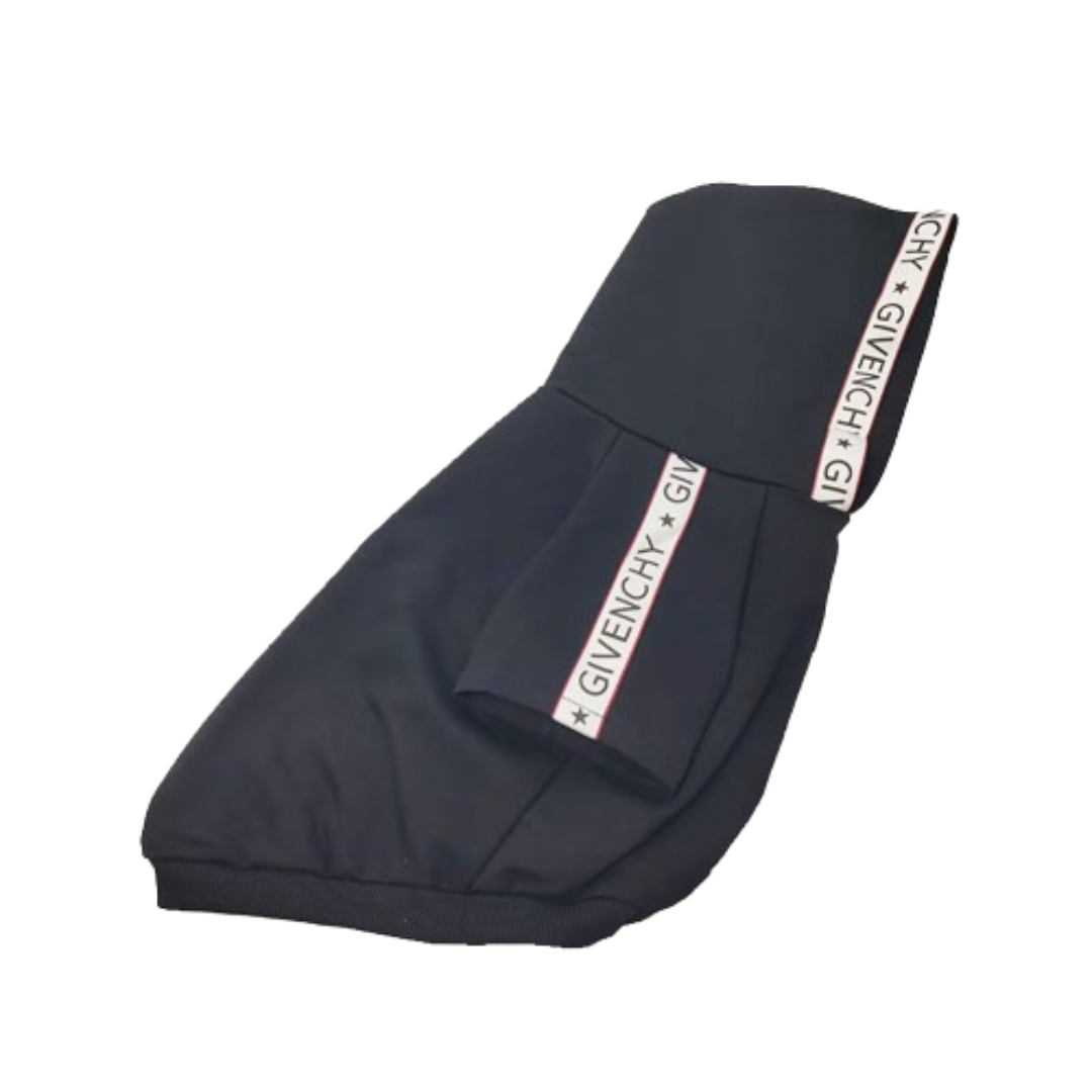 The Pawvenchy Logo Hoodie puts signature logo trim exactly where it matters: across the hood edge and down the sleeves. Black cotton construction with crisp white logo bands that reference Parisian luxury codes without overdoing it.