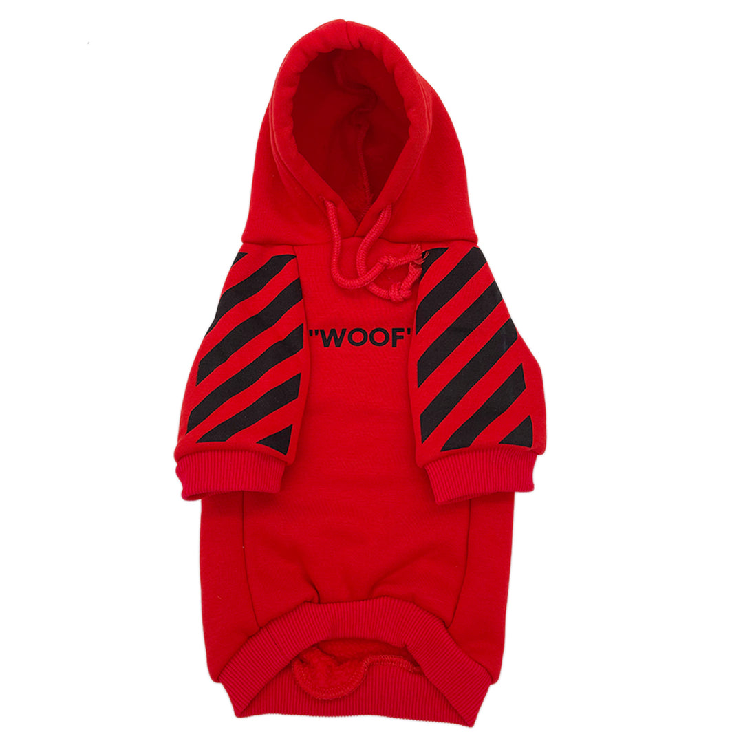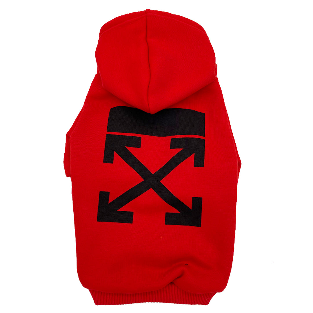 This is the hoodie for dogs whose owners get the Off-White reference. Clean industrial graphics that work on walks or photo shoots.